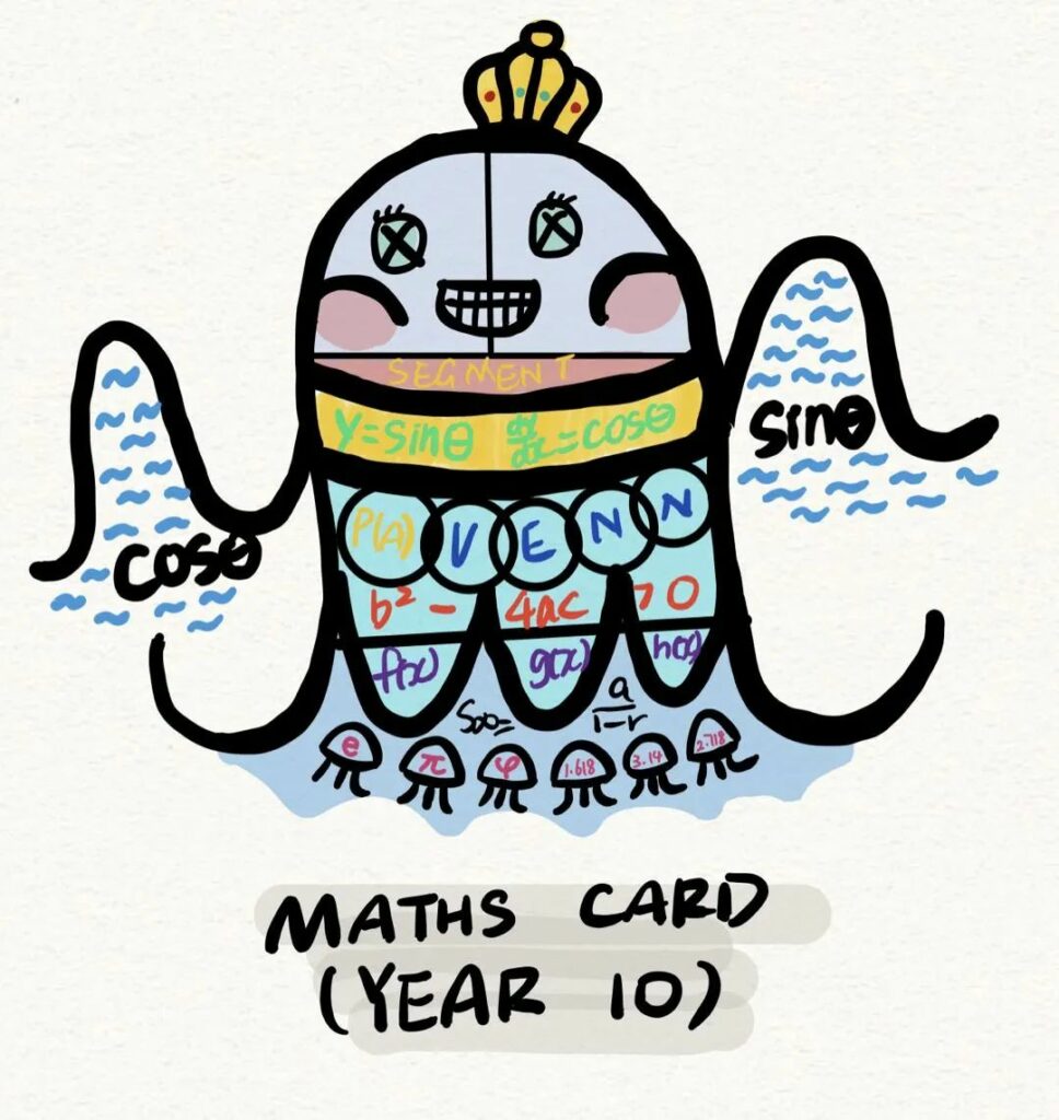 为了进一步激发学生的学习动力,数学组的老师还准备了个有趣的点子,就是绘制一些可爱的卡通卡片,把数学元素和卡片结合在一起,有专门章节性的卡片,同时也有季节限定的卡片,例如最近的圣诞版本。