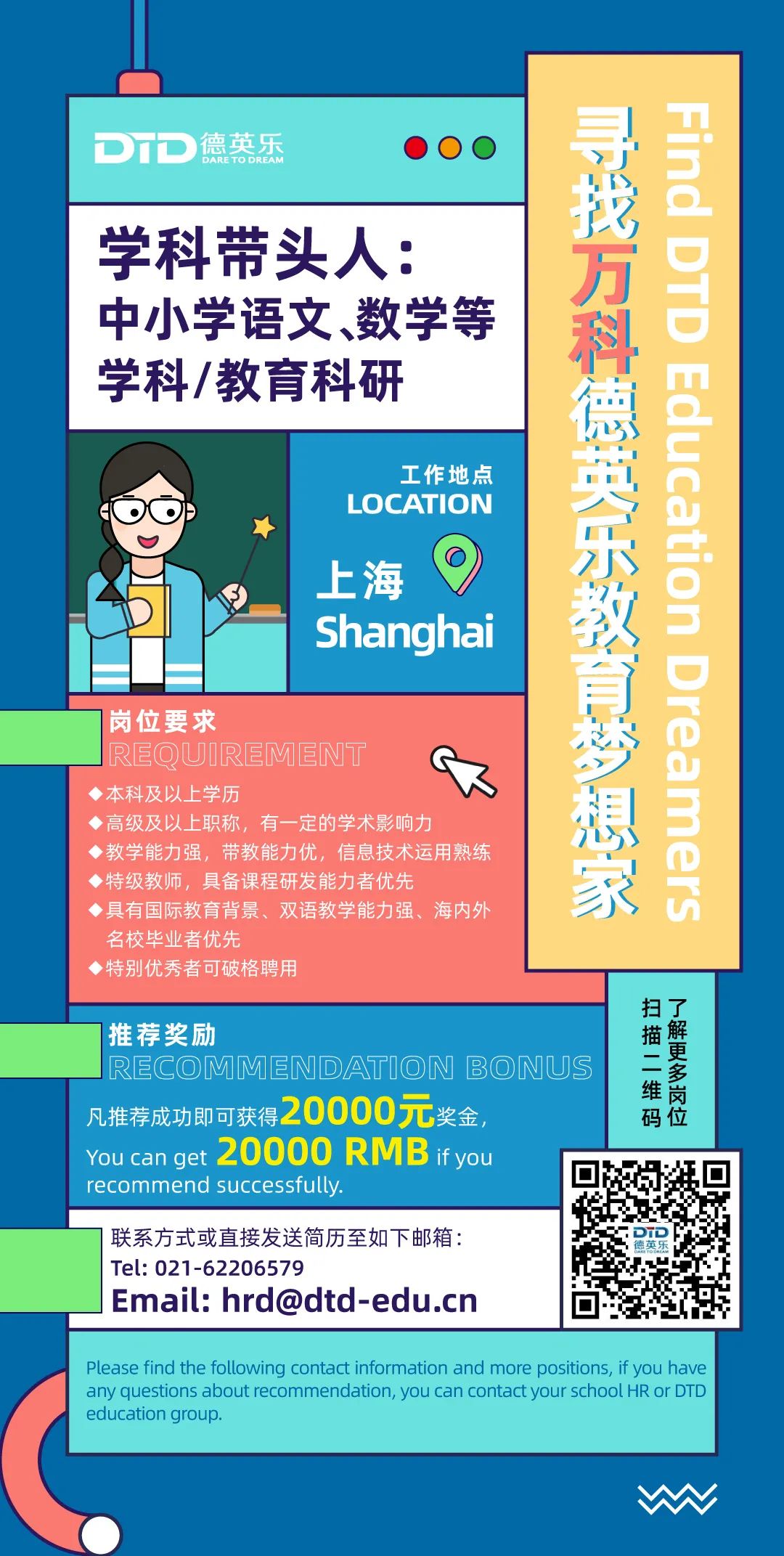 在这里,你身边的同事50%以上硕博学历,他们大多来自于国内985/211(清华、北大、复旦、华东师范等)和世界TOP50名校(哈佛、牛津、剑桥、纽约大学等)。更有上海市督学、特级校长、教授、全国优秀教师、学科带头人等大咖引领,手把手带你成长,让你在正确的道路上,脚踏实地不迷茫。