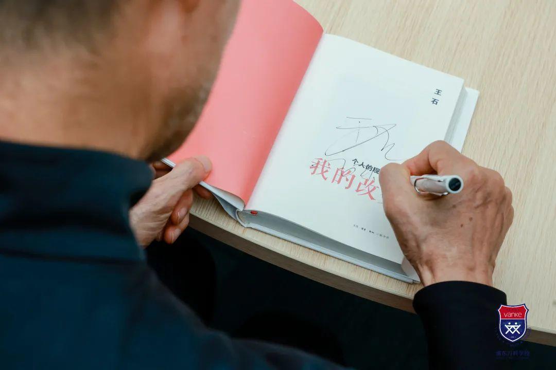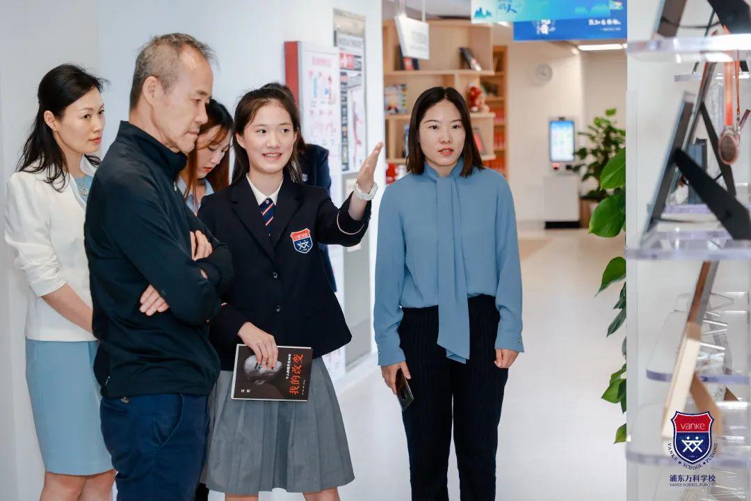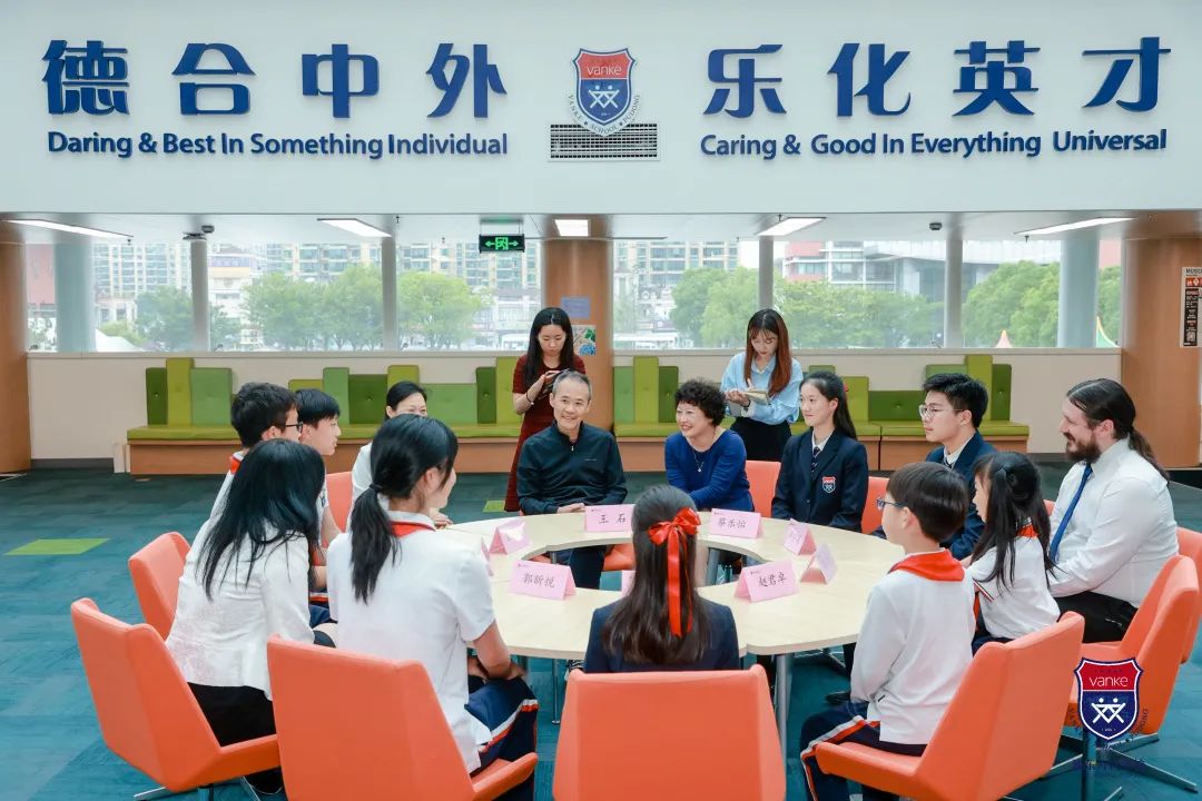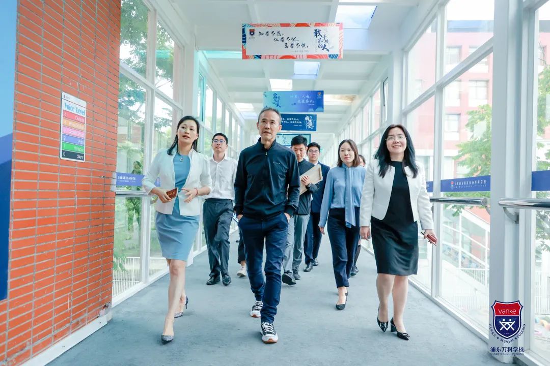 当日是阴天,还时不时飘着雨丝。但王石主席还是冒着雨来到上海浦东新区民办万科学校进行访问与指导。随后在德英乐教育的总经理许青川女士和浦东万科学校中小学执行校长孙少青、高中执行校长尹丹等人陪同下,先后参观了中小学部,高中部,并与VSP的八名学子进行亲切交流,度过了一段难忘的时光。