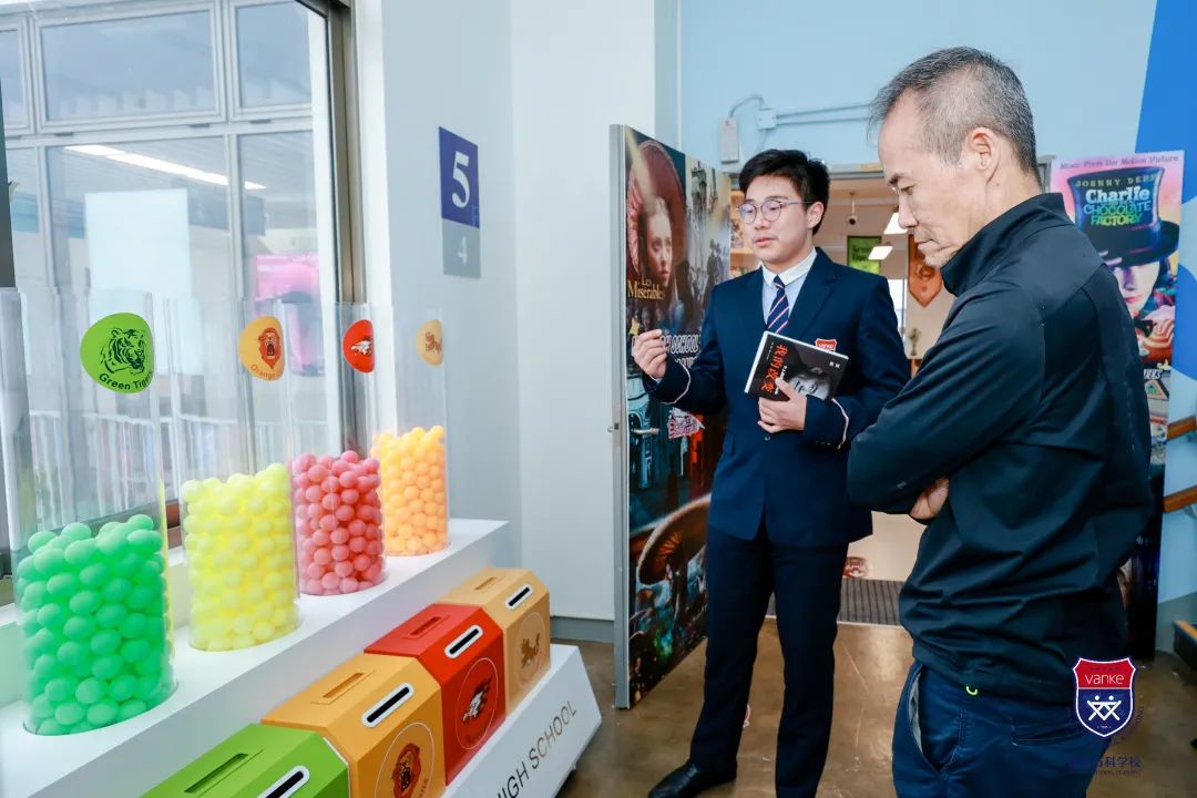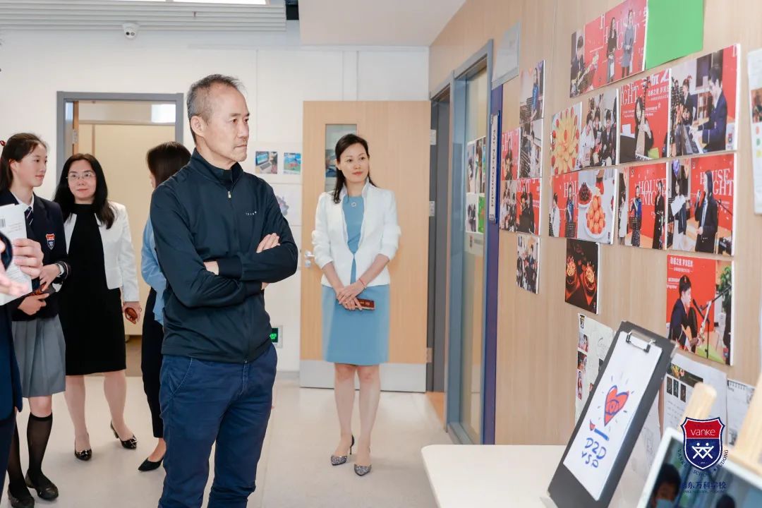 在参观过程中,王石主席总是会驻足观看墙面上张贴的海报和学生作品,并时不时地询问两句。其中对学生会的一些海报很感兴趣,孙校长说,每学期伊始之时,都会进行学生会主席选举,这也是锻炼孩子们领导力的一个好机会。而且每学期结束的时候,学生会成员还需要进行演讲,相当于每学期的述职,对于他们的表达能力和领导力都是极大的锻炼。
