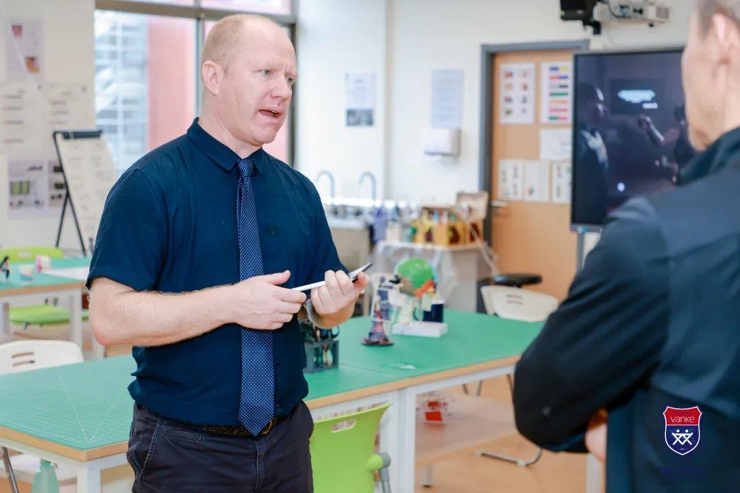 VSP高中部艺术老师Roderick McDonald向王石主席介绍他们现在的教学活动更倾向于询问和尊重孩子们的意见去构思、成立一个项目并且想办法去完成。“我们希望看到我们的学生尝试不一样的事情,希望看到他们将来成为自己梦想的建筑师,设计师或者是游戏设计师”,Roderick说,“这不是一件简单的事,但是我们在努力地去实现”。尹丹校长说:“以前孩子们在学习画画可能只是为了画的像,唱歌只是为了不跑调,而现在他们学会了通过他们的作品去表达自己心中所想。”
