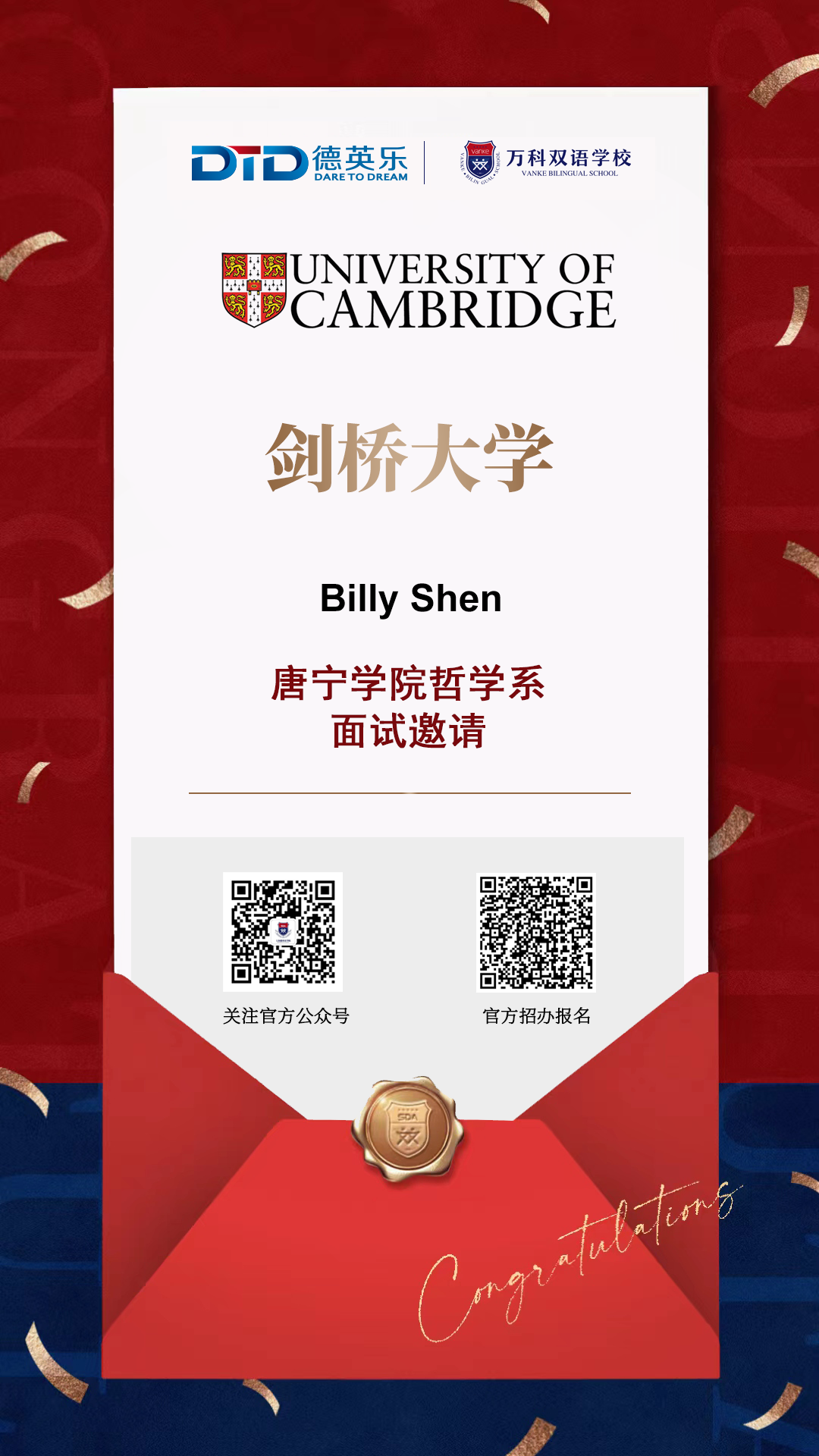 目前收到的部分剑桥面邀offer