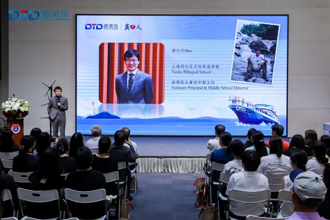 除了各校园的教师代表,来自上海闵行万科双语学校的郝行行校长从他在西藏和美国波多黎各从事地质研究出发,分享了自己在近10年教育工作中,先后接触并教授了国家课程、AP课程及A-Level课程,以及VKBS在新学期全面推行PYP课程并发挥中小学承上启下作用的规划