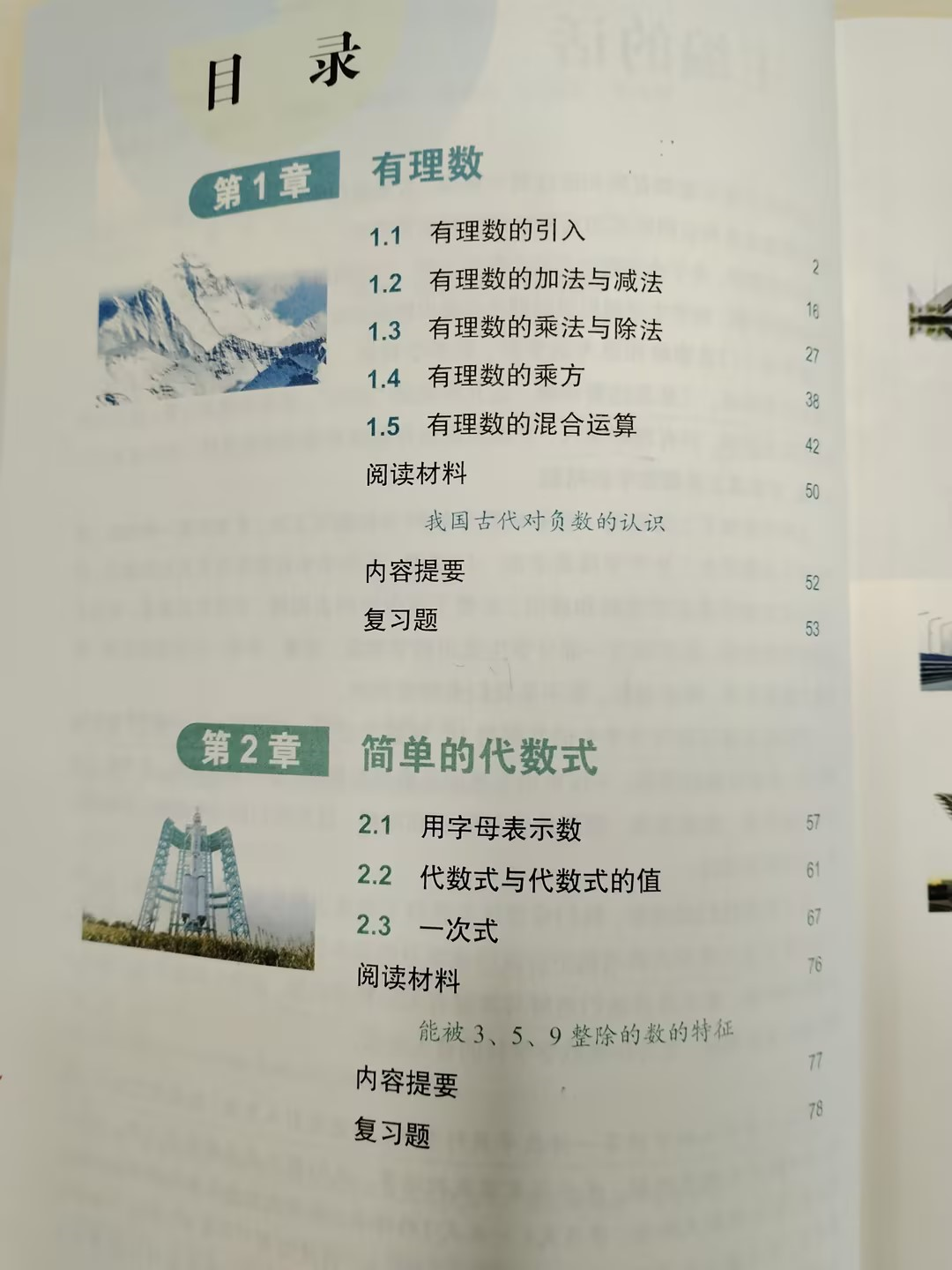例如将“数的整除和分数运算及应用” 前移到小学,初中第一章是有理数,在巩固了小学的有限小数和分数四则运算的基础上继续对数系进行扩充到有理数,这样一来新教材“对数的认识”的学习顺序更加合理。