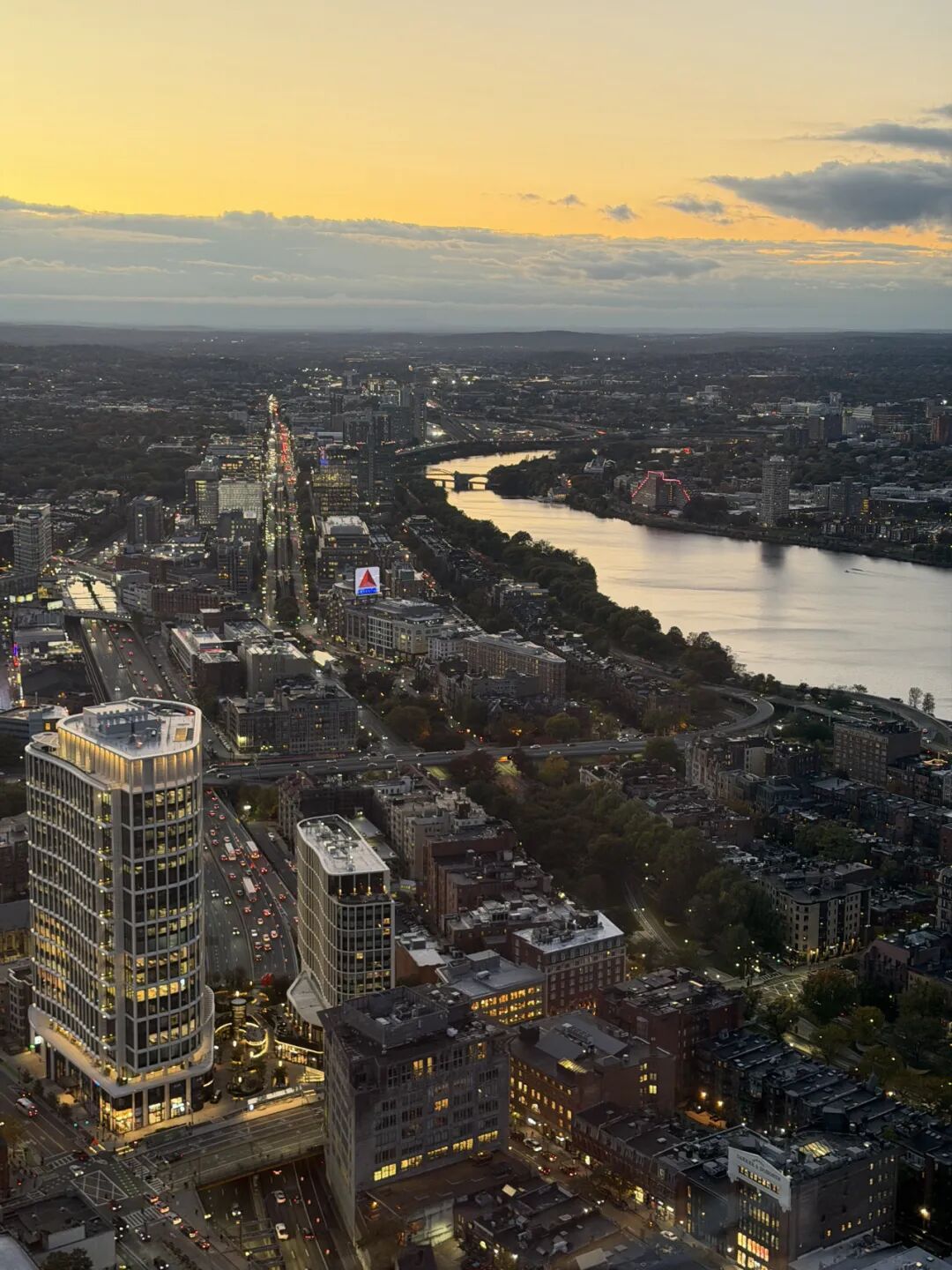 在波士顿的最后一晚,大家登顶波士顿最高楼Prudential Tower,追了一场查尔斯河独有的日落美景,望远方查尔斯赛的起点处,或许这群少年已经有了新的目标 。