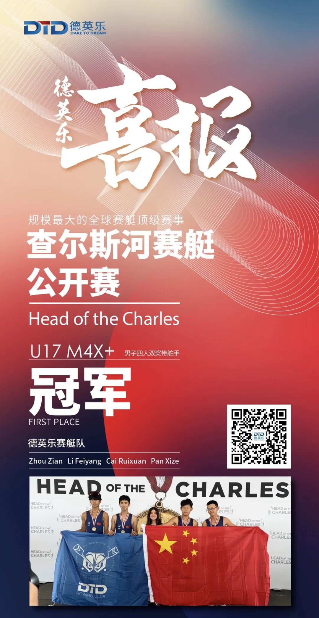 世界级冠军!60年来首支中国队伍登上查尔斯河公开赛冠军领奖台
