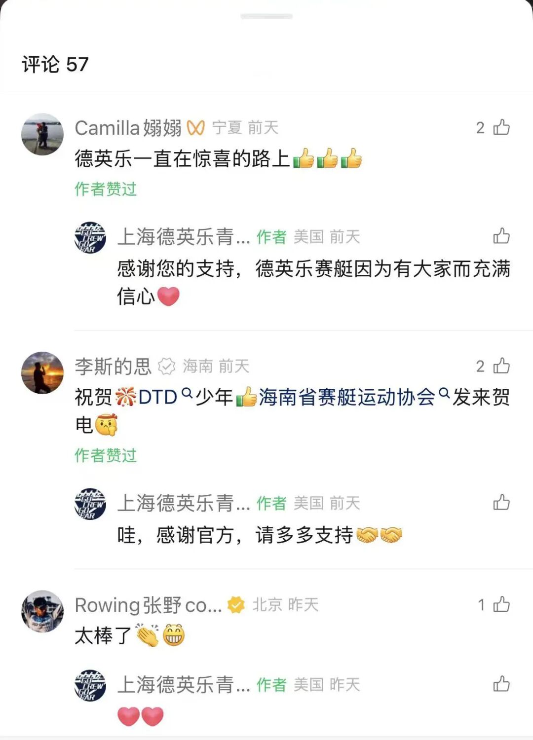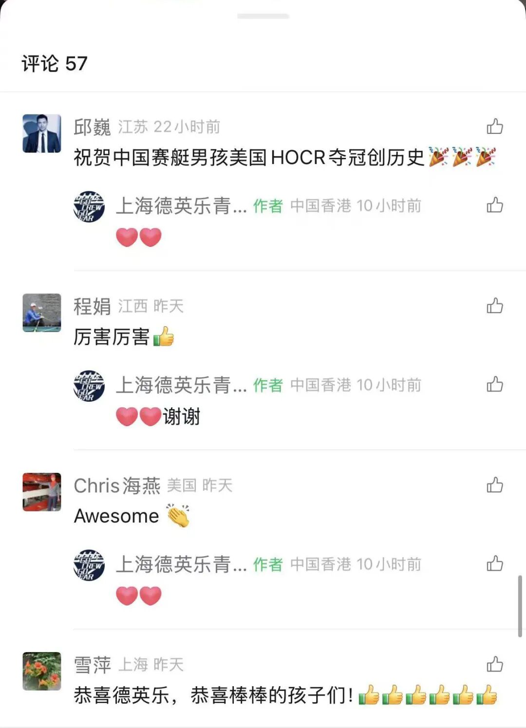 包括哈佛华人赛艇队在内向少年们发来祝贺